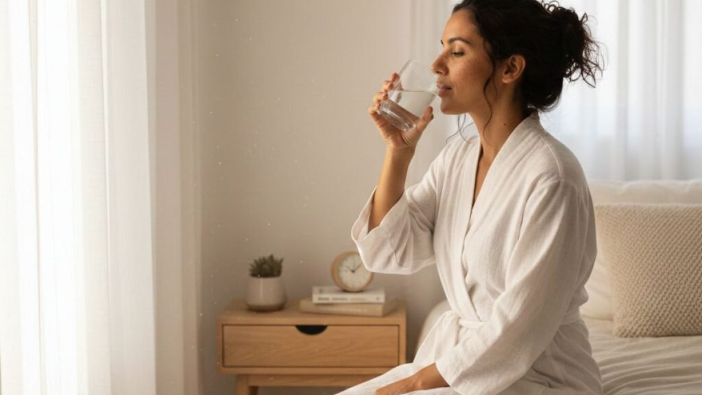 Após horas de sono, o corpo acorda naturalmente desidratado. Beber um copo de água ao levantar: